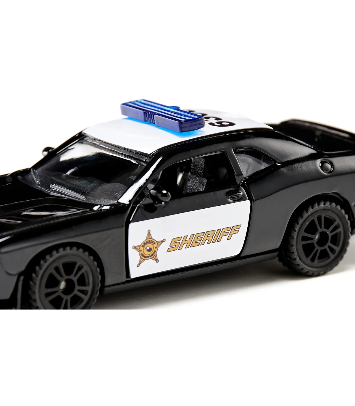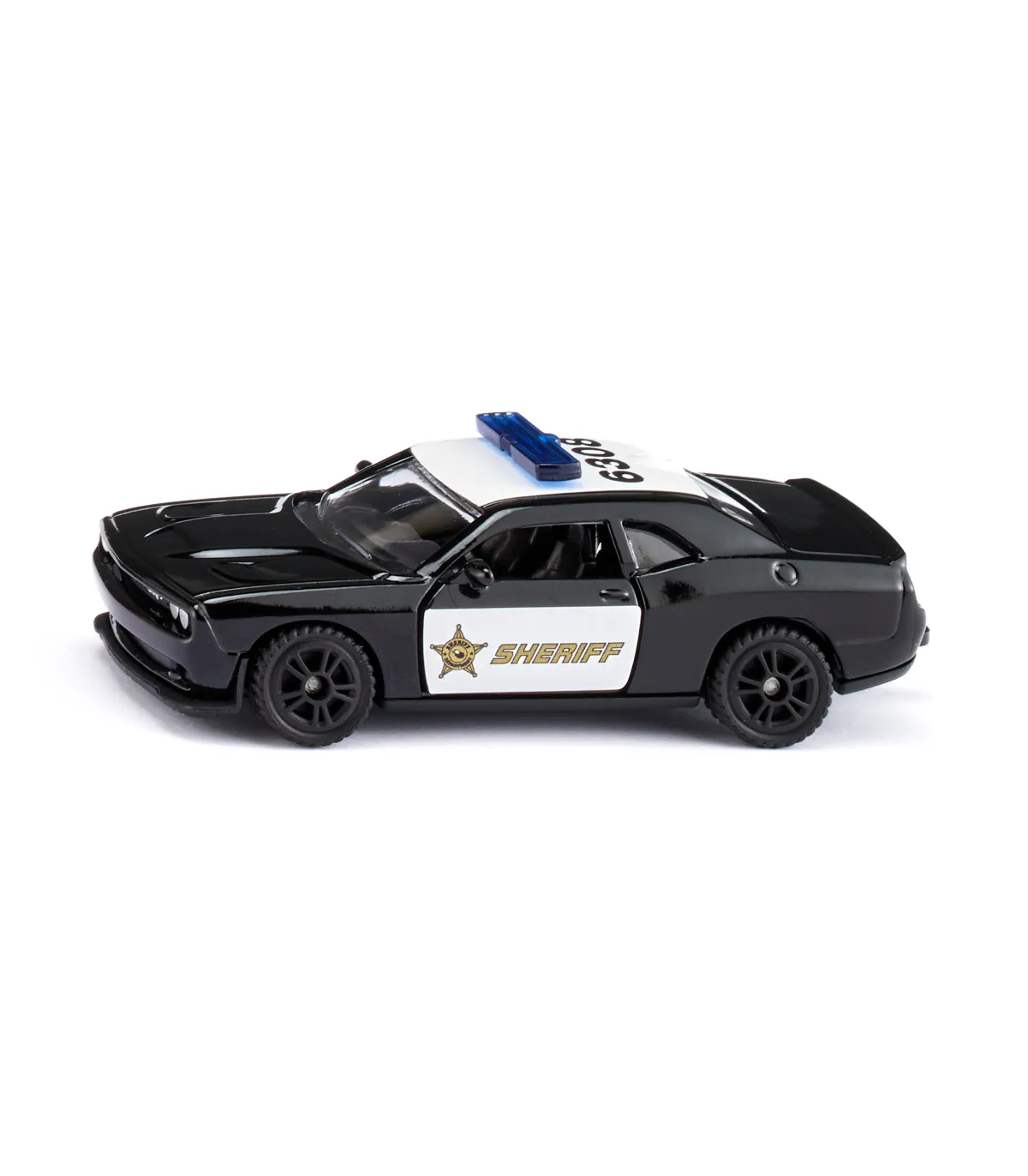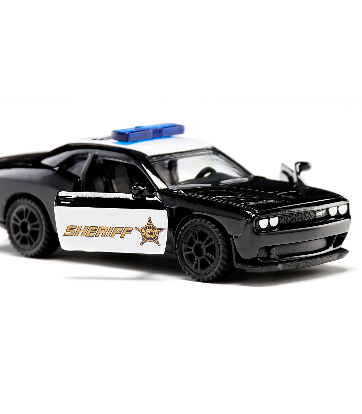 La seguridad de los habitantes es lo primero para el sheriff del condado. 48 de los 50 estados federales de los Estados Unidos emplean los servicios de un sheriff, un agente de la ley especialmente elegido para hacer cumplir la ley. Para perseguir a los delincuentes en zonas a veces muy rurales con largos tramos de carreteras federales, el sheriff necesita toda la potencia disponible que puede generar un motor, como el legendario Dodge Challenger SRT. El motor V8 de este hot rod puede desarrollar unos atronadores 700 caballos de potencia. Los anchos neumáticos hechos de material engomado tienen dificultades para domar y transferir una potencia tan enorme a la carretera, por lo que el chirrido de los neumáticos está garantizado. Los faros integrados le dan a este hot rod el aspecto de una bestia feroz. Las puertas se pueden abrir de par en par, lo que hace que el esfuerzo de entrar y salir del coche sea muy sencillo. El Dodge, que sirve como vehículo oficial del sheriff del condado, está pintado en el característico blanco y negro de la policía estadounidense y también lleva la insignia dorada y las letras SHERIFF en los laterales. No queda más que encender la luz azul y salir en persecución.