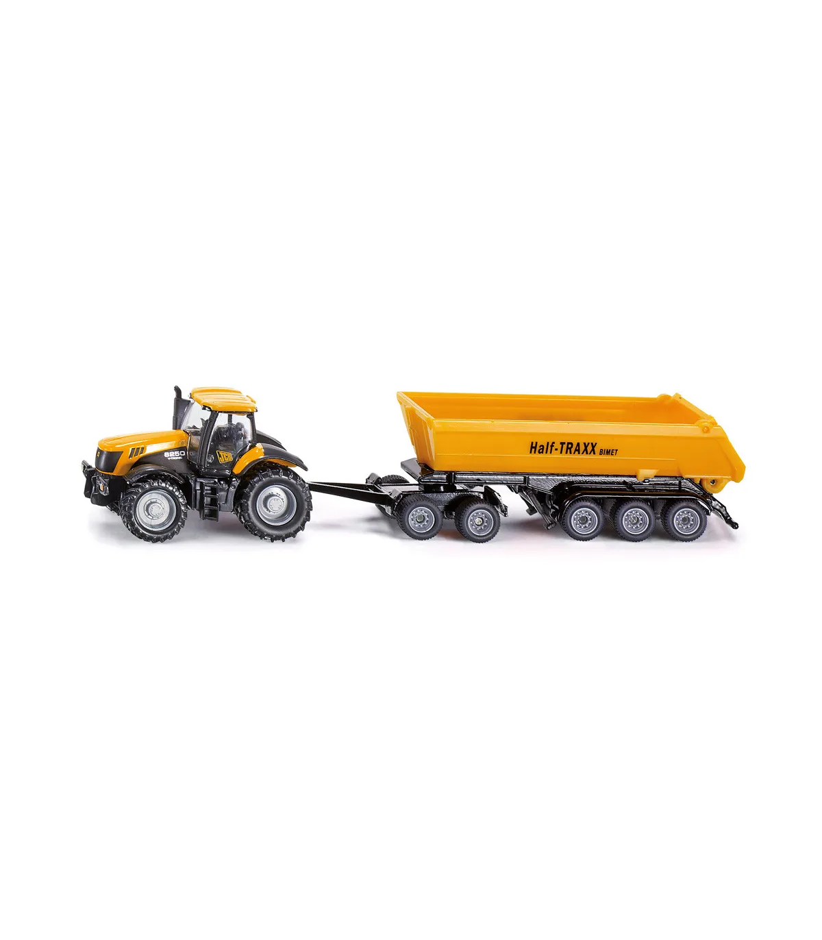 Información del producto "Tractor JCB con plataforma rodante y caja basculante"