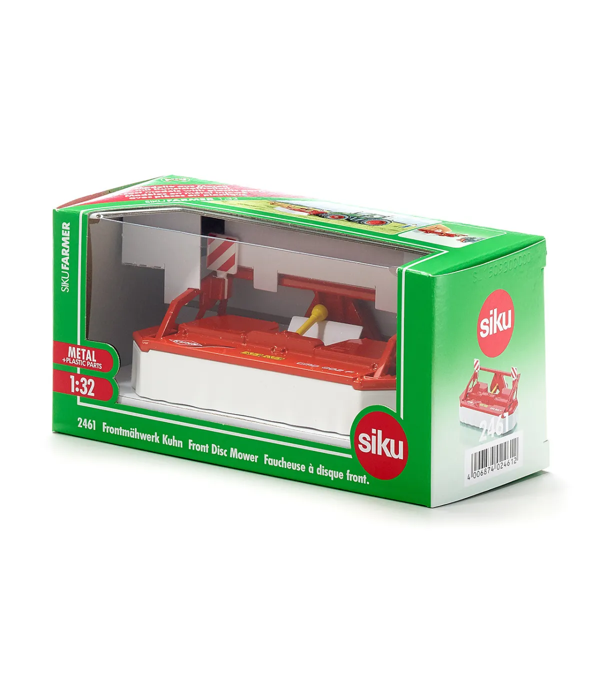 Un cortacésped sencillo montado en la parte trasera es indispensable para el trabajo diario de corte en una pequeña y mediana empresa. El modelo del fabricante francés KUHN está fabricado casi en su totalidad en metal y se puede acoplar fácilmente a cualquier tractor SIKU. El cortacésped se puede subir y bajar y convence por la detallada representación visual de diversos detalles.