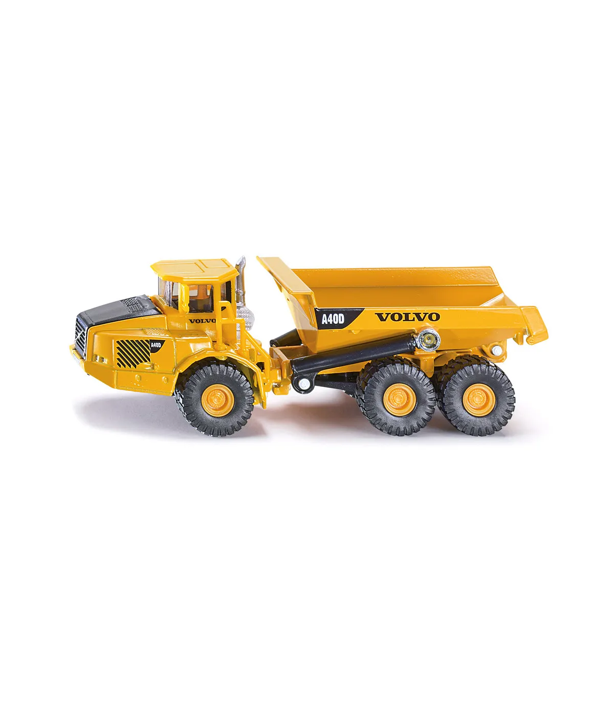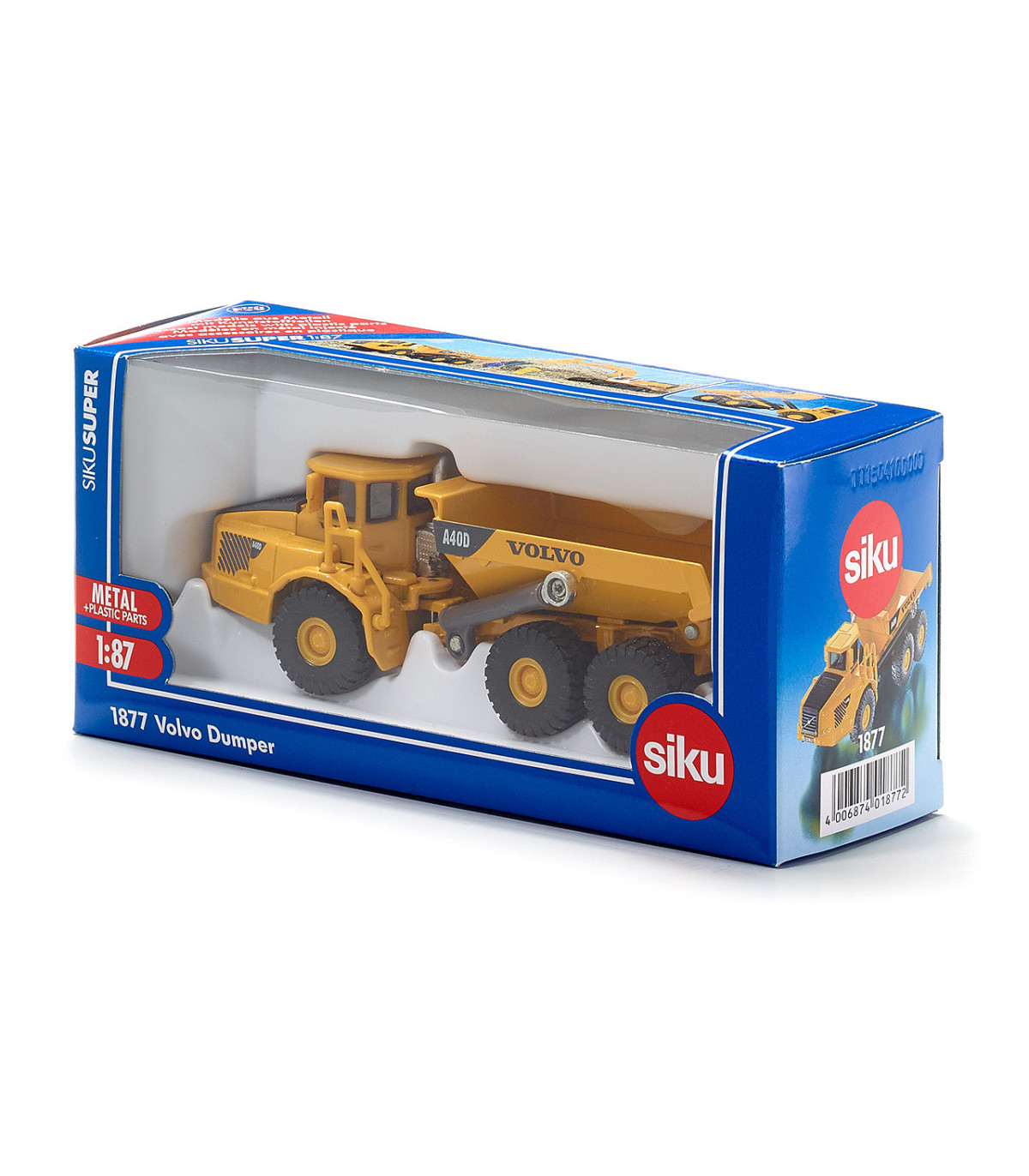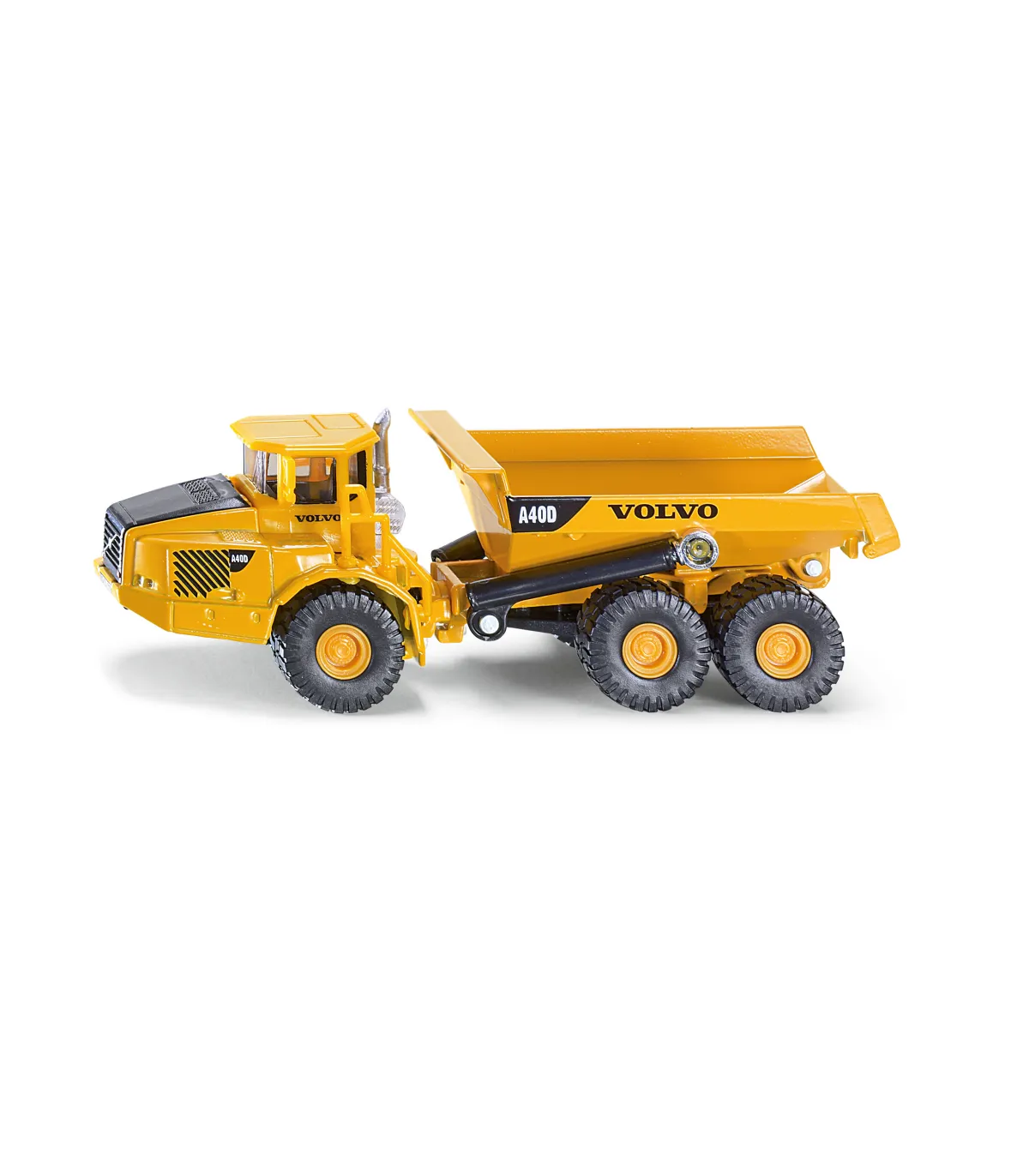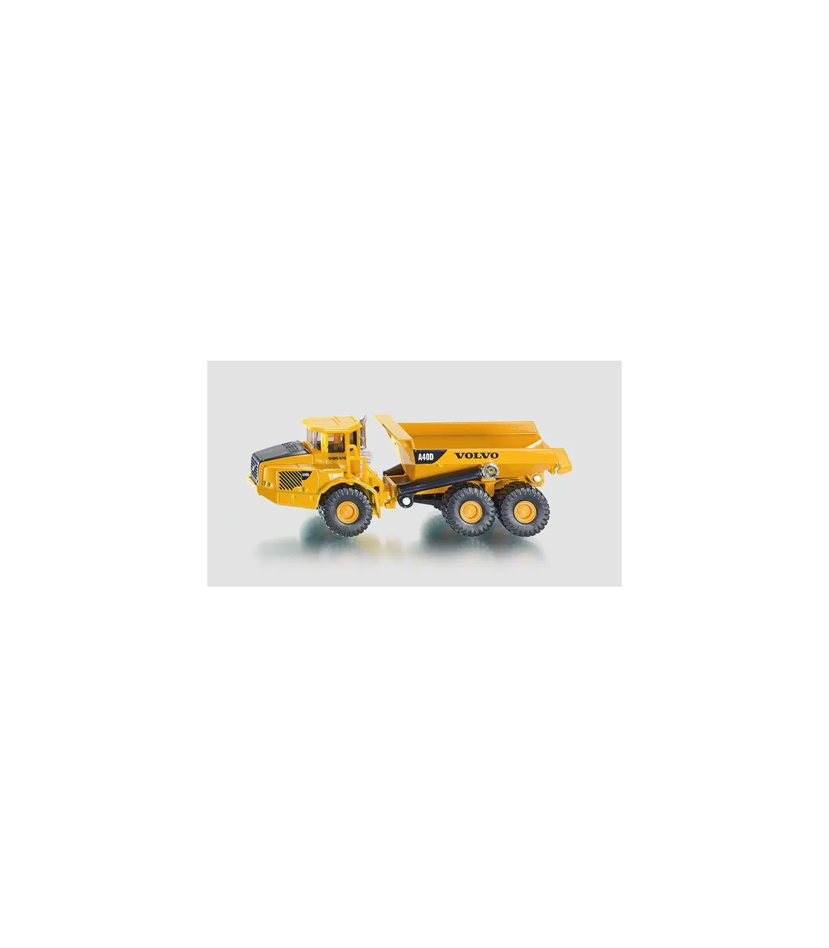 Vehículo de obra pesado de la marca VOLVO como complemento a la serie de maquinaria de construcción en escala 1:87. El modelo, fabricado casi en su totalidad de metal, destaca por la detallada implementación de detalles ópticos, así como por su robusta articulación articulada y su cubeta inclinable.