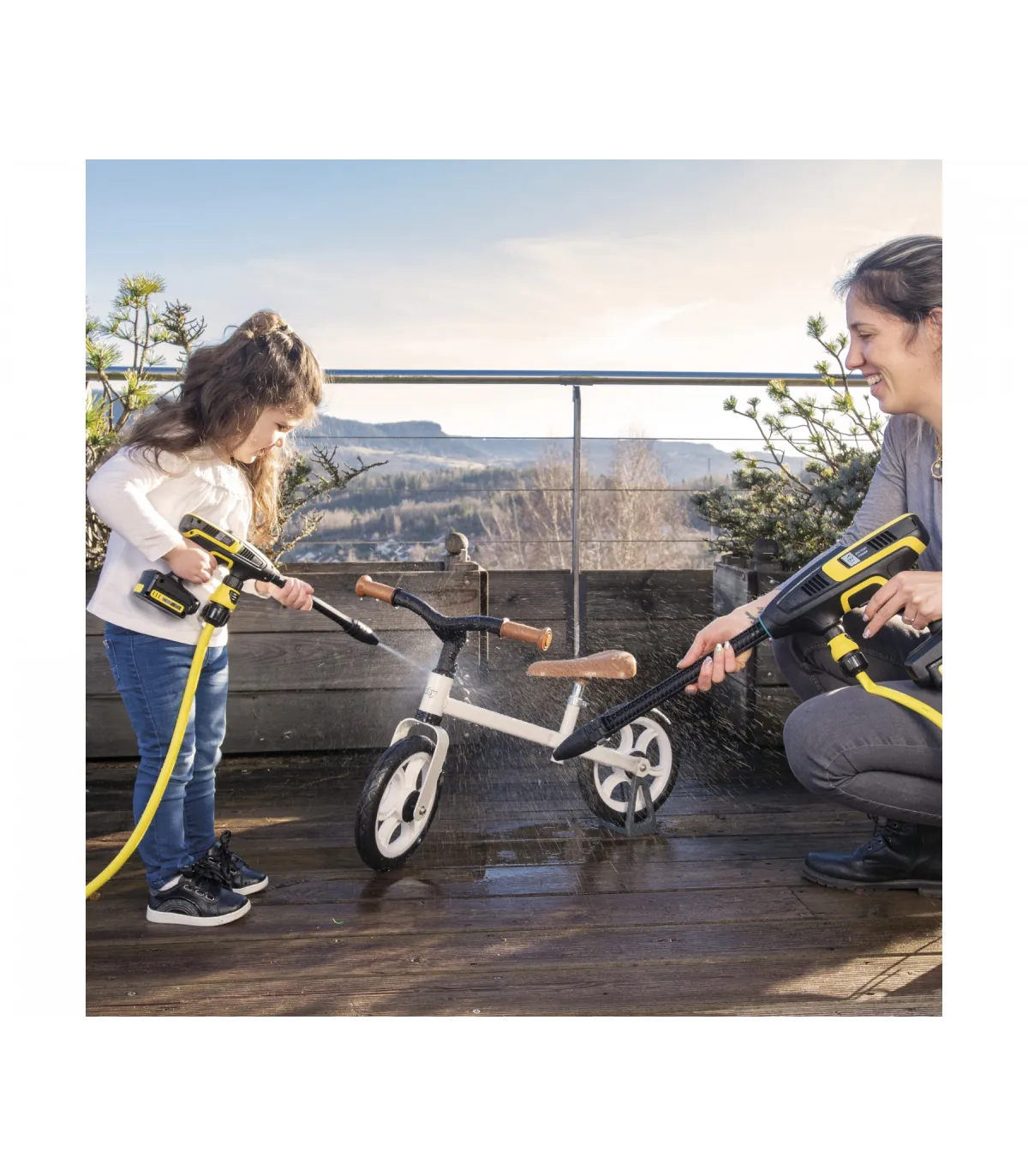 Ahora los niños pueden hacer palidecer a sus padres: porque con la limpiadora de media presión KHB 6 de Smoby Kärcher los más pequeños estarán perfectamente equipados cuando necesiten limpiar la bicicleta para correr o el tobogán. Simplemente tómelo en la mano, conecte la manguera y el chorro de agua se pone en marcha con una presión adecuada para los niños. Y bang: ¡listo!