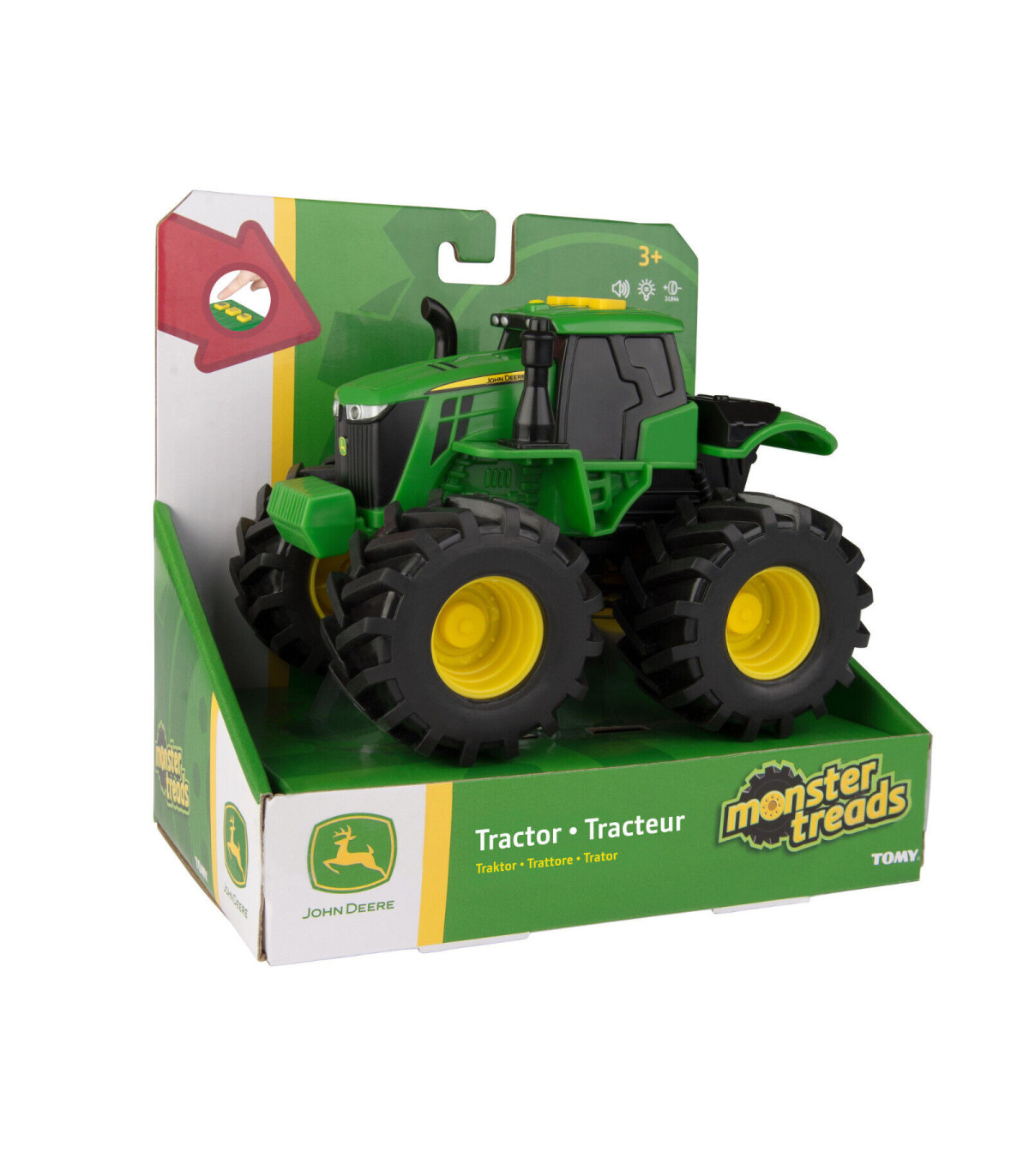 Sume el tractor "Lights and Sounds" a su colección de ruedas gigantes. Además de los divertidos neumáticos gigantes, cuenta con luces y sonidos que se activan pulsando un botón para estimular la imaginación del niño. Incluye 3 pilas botón LR44 NL de 1,5 V. Para niños a partir de los 3 años.