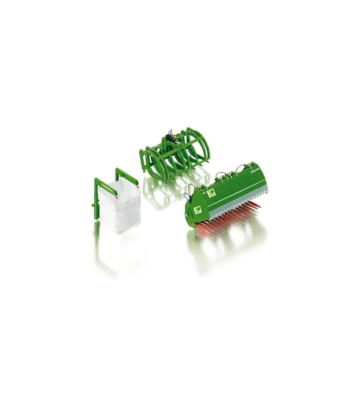 Más opciones del cargador de John Deere tractor que el John Deere con cargador frontal de 32-fold miniaturización puede llamar suyo, lo que puede aumentar la funcionalidad con más opciones. El segundo grupo contiene Cortador ensilaje, portador Big Bag con gran bolsa y tenedor palillos. Cortador de ensilado está en el sector agrícola como un archivo adjunto confiable para la eliminación limpia de cualquier tipo de ensilaje de la seguridad del transporte de sacos a granel garantiza el soporte especial bolsa grande. Debido a la carga hidráulica delantera puede aumentar las bolsas grandes están por ejemplo utilizar fácilmente para el llenado o el taladro para remolques de carga. El tenedor palos también tiene un mecanismo completamente móvil, que puede separan la pinza y las cuatro puntas.