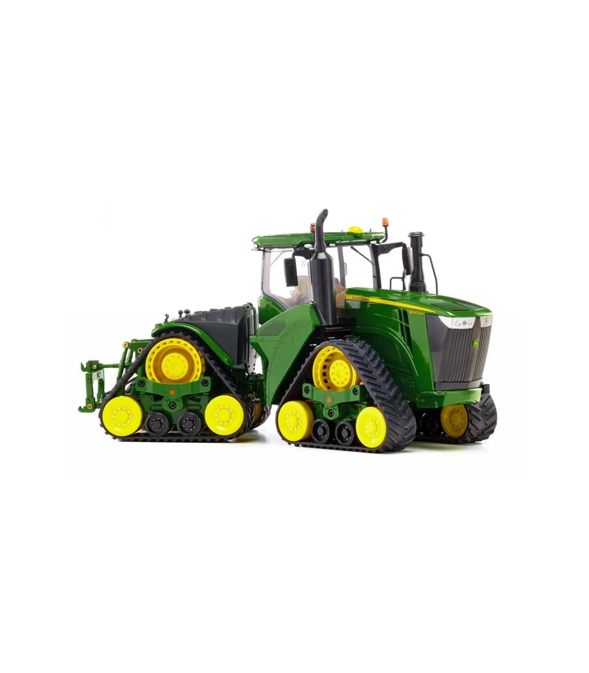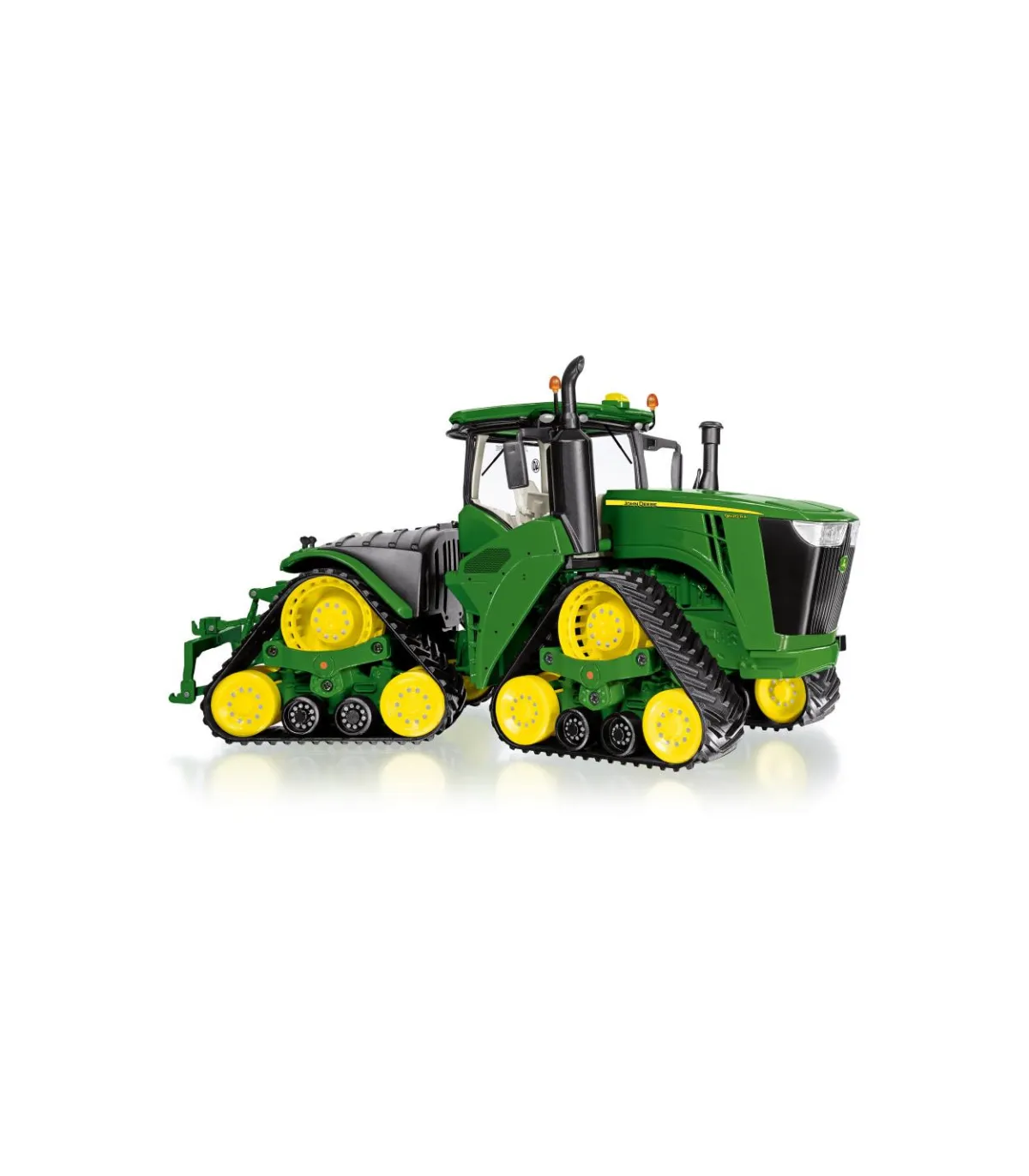 Modelo con orugas de oruga y articulación articulada: son los proyectos especiales que representan el mayor desafío para los diseñadores de WIKING. Sin lugar a dudas, esto incluye el nuevo modelo 1:32 del John Deere 9620RX. Mientras que la miniaturización de un tractor significa una rutina detallada de muchos años con una garantía de precisión, las cuatro transmisiones que han reemplazado las ruedas ahora requieren un esfuerzo de diseño significativamente mayor. El tractor de oruga de 620 hp fue creado para los mayores desafíos en la agricultura moderna. Es comprensible que se trate de aumentar la productividad, reducir costos y reducir riesgos. Todo esto debería unir el modelo que se construye en la planta de tractores estadounidense en Waterloo. Los expertos en maquinaria agrícola de WIKING ahora le están dando a los amigos de la escala de precisión 1:32 un modelo funcional atractivo. Con la combinación de componentes de metal y plástico, el modelo WIKING tiene éxito en la miniaturización detallada de las orugas, que por supuesto son completamente funcionales. Además, existe la función de enlace articulado, que se mantiene móvil a través de una articulación articulada oscilante. El enganche de remolque en la parte trasera demuestra ser tan detallado como el pesado capó hecho de zinc fundido a presión. Lo mismo se aplica a las dos partes del chasis. De una manera probada, el espectador puede dejar que su mirada pasee por el interior de filigrana de la cabina, la puerta izquierda está diseñada como una abertura de acceso. La iluminación en la parte delantera y trasera, así como en la cabina, se logra mediante elementos de plástico finamente insertados. También hay luces versátiles, espejos exteriores, toma de aire, pero también escape y la caja de herramientas en la parte delantera izquierda. Los espejos retrovisores, por supuesto, se pueden ajustar, así como el embrague trasero.
