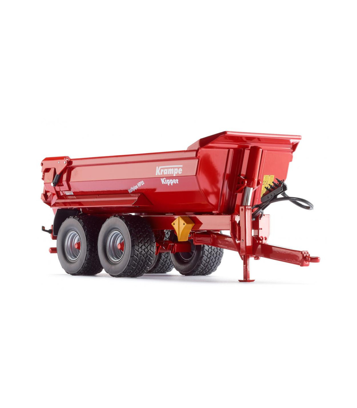 WIKING realiza el HP20, que como una miniaturización funcional significa un enriquecimiento significativo de áreas temáticas multifacéticas en la escala de precisión 1:32. El marco del chasis finamente detallado hecho de metal se puede unir al tractor con una barra de tiro móvil. El poderoso canal está hecho de zinc fundido a presión, el portón trasero está hecho de plástico. En la función basculante, el portón trasero se abre para descargar. Esto nuevamente garantiza la máxima funcionalidad. El equipo tiene un efecto impresionante porque los dos ejes de la HP20 tienen neumáticos coronados y un perfil de dibujo profundo. Para simular la capacidad todoterreno, WIKING equipa el remolque con ejes oscilantes que son tan flexibles que se adaptan al nivel del suelo. Los guardabarros están hechos de plástico. el pie de apoyo está unido de forma móvil a la parte delantera izquierda del marco y, por lo tanto, puede garantizar un soporte individual para el HP20. La parte trasera tiene un parachoques de filigrana con un dispositivo de iluminación prototípico correspondiente.