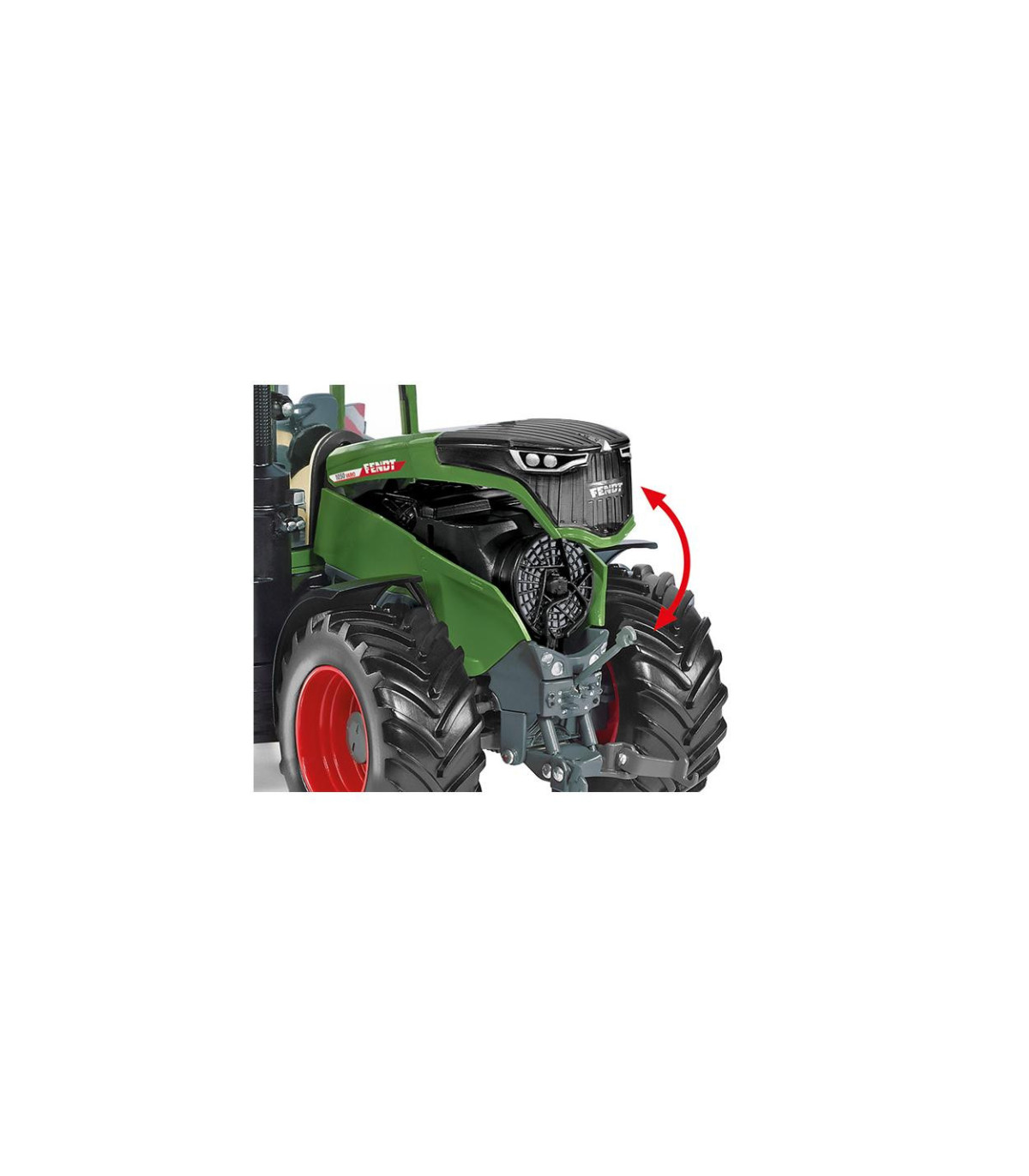 Las características funcionales del Fendt son auténticamente comprensibles de acuerdo con la filosofía WIKING. Los neumáticos se pueden quitar y reemplazar gracias al cubo magnético y la herramienta provista. Otros elementos están dispuestos de forma móvil. Esto incluye la escalera plegable hasta la mitad para facilitar la entrada del conductor. Para que sea más fácil ver el interior de la cabina, el cristal de la cabina trasera se puede abrir. Lo mismo se aplica a la puerta de cabina izquierda. Directamente detrás del asiento del pasajero delantero es móvil y se puede plegar. Pero numerosas funciones técnicas también ayudan a descubrir aún mejor el modelo 1:32. De esta forma, el portadispositivos delantero se puede levantar y el capó del motor también se puede abrir. Esto da una visión clara del motor simulado.