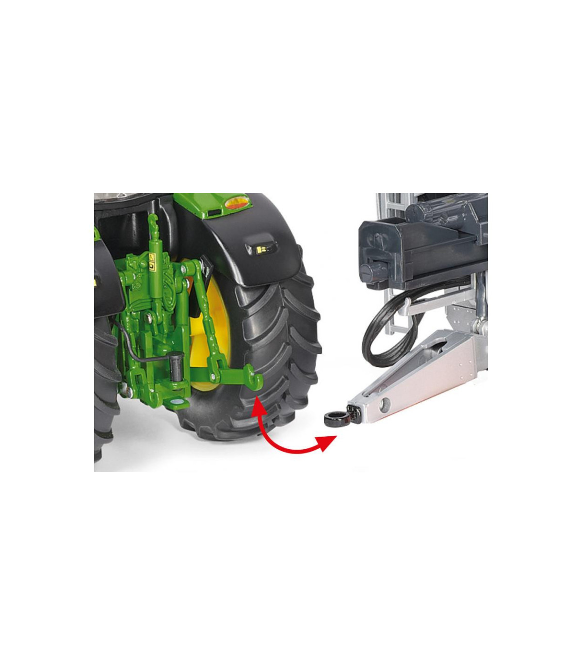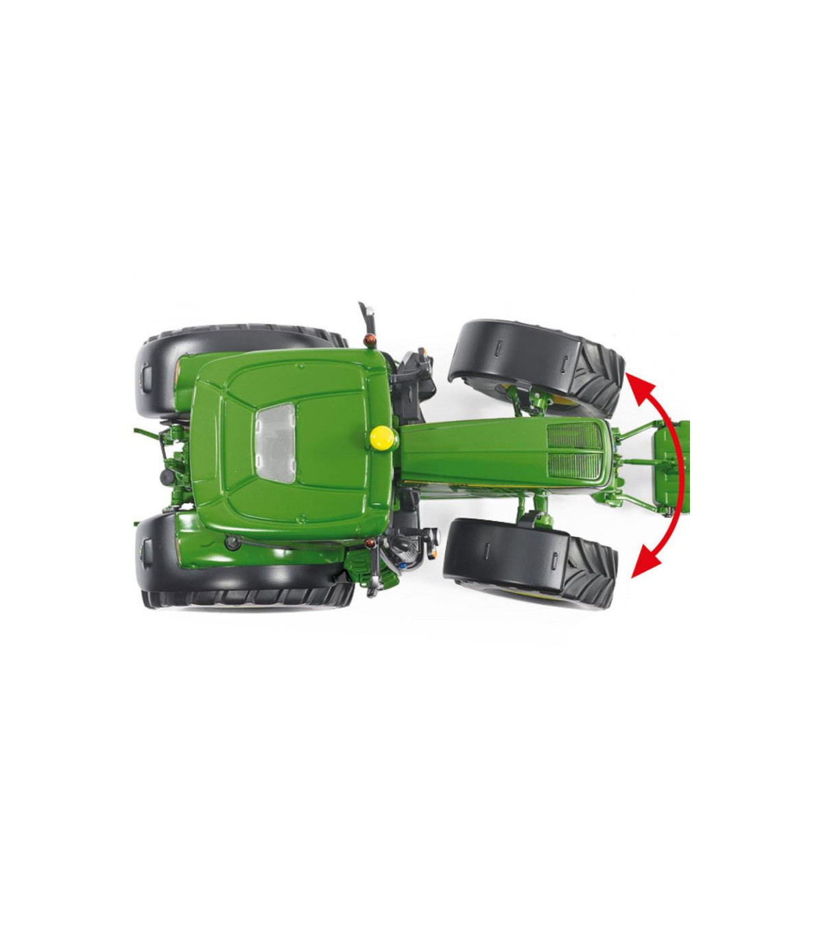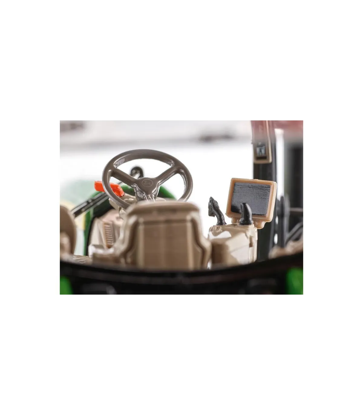 El capó se puede abrir para que, gracias a la representación detallada, se pueda ver el potente motor de forma prototípica. El modelo tiene eslabones superiores e inferiores móviles. El enganche de remolque está diseñado como enganche de remolque. El peso delantero se puede quitar por delante. Se pueden abrir ambas puertas laterales y la ventana trasera de la cabina. El eje pendular también se puede controlar mediante el volante. Ambos retrovisores exteriores son plegables. El interior de la cabina con todos los instrumentos es modelo. La pantalla se encuentra ahora al nivel del pilar A. Las placas de matrícula, las señales de advertencia y las luces, así como las conexiones hidráulicas, reciben una impresión delicada. La parte trasera también parece estar reproducida de forma muy realista y los neumáticos tienen una banda de rodadura rugosa.